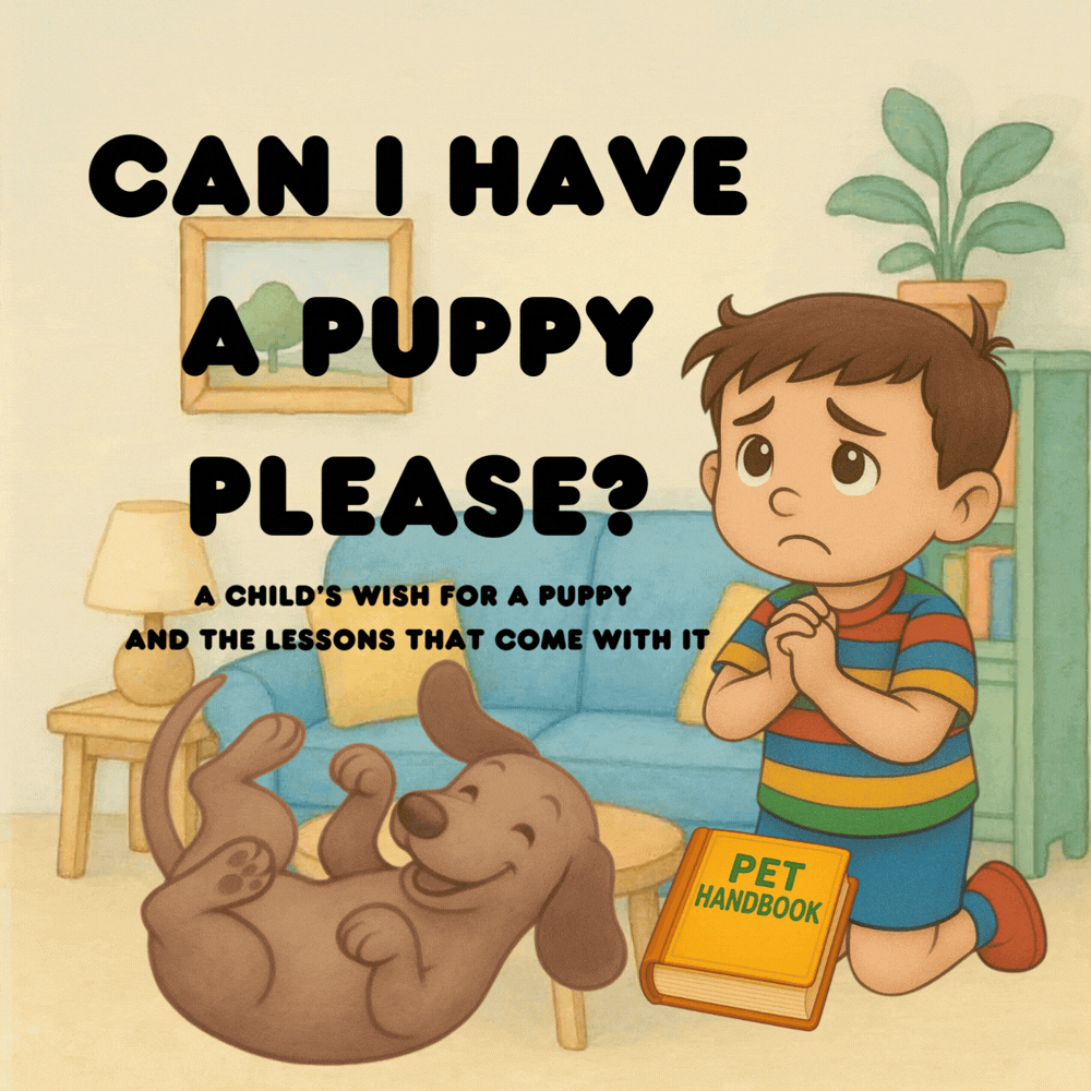 Are your kids dreaming of getting a puppy? This charming picture book helps children (and parents!) explore the joys and responsibilities of having a furry friend.Written in gentle rhymes and filled with adorable illustrations, Can I Have a Puppy Please? follows a young child's heartfelt wish for a puppy — and all the important questions that come with it.Perfect for families considering pet adoption, this story opens up loving conversations about care, patience, and what it truly means to look after a living creature.