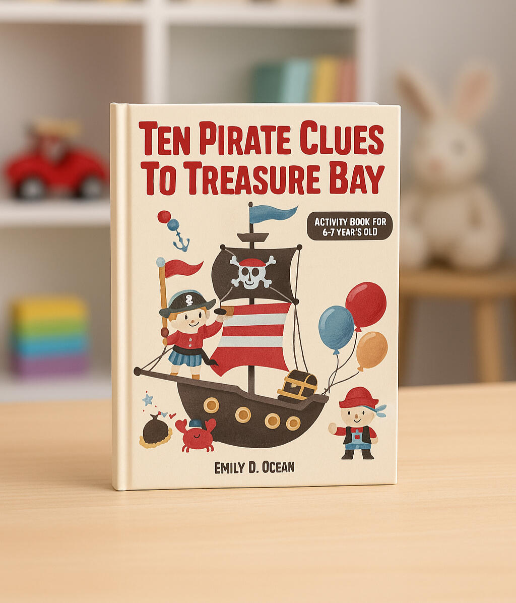 Set sail on a swashbuckling journey with The Ten Pirate Clues to Treasure Bay — a playful, clue-filled pirate adventure book for kids!With each page, your child follows rhyming riddles and colorful maps to uncover hidden clues, solve fun puzzles, and inch closer to the treasure. It's the perfect mix of story, activity, and imagination.
