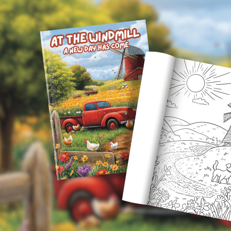 At the Windmill: A New Day Has Come is a gentle, nature-inspired coloring book filled with windmills, rolling hills, and cozy village scenes — perfect for those seeking calm, creativity, and a mindful break from the day.This book invites you to slow down, take a deep breath, and color your way through a peaceful world where every sunrise brings new hope.